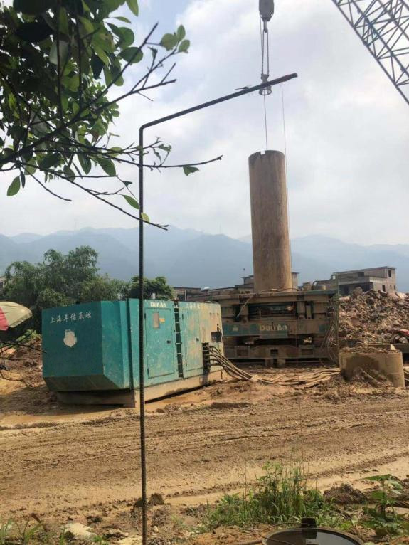 3、定好樁位以后,用全回轉(zhuǎn)鉆機驅(qū)動套管進行鉆進施工。在鉆進一根套管后,可用吊車吊起另一根套管,與鉆入地下的套管連接,然后繼續(xù)鉆進施工。